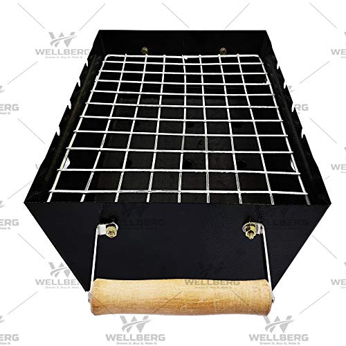 Wellberg Barbeque Grill Charcoal Barbeque with 6 Skewers with Wooden Handle, Charcoal Grill (Yellow)