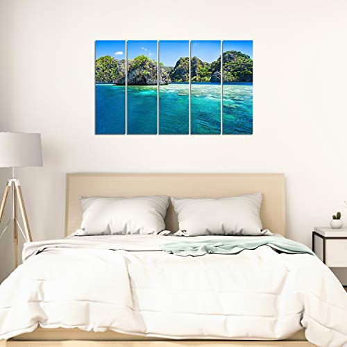 WENS Admiring Beach 5 Panels Velvet Laminated Wall Art for Home Decor