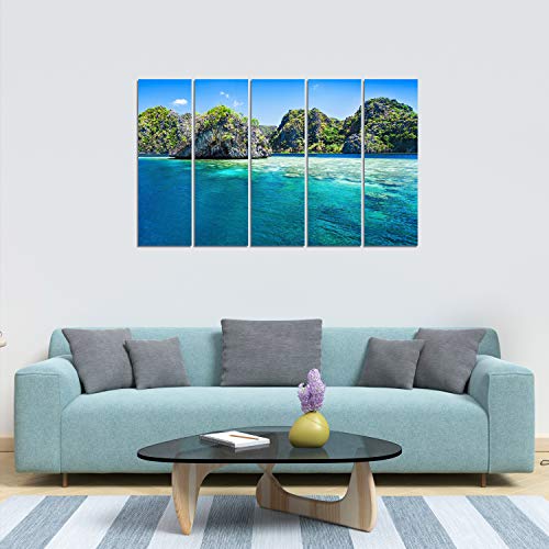 Specification: WENS Admiring Beach 5 Panels Velvet Laminated Wall Art for Home Decor