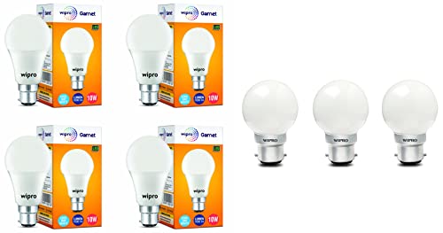 Specification: Wipro Garnet Base B22 10-Watt LED Bulb (Pack of 4, Cool Day White)+Wipro Safelite B22 0.5-Watt LED Night Bulb(White…