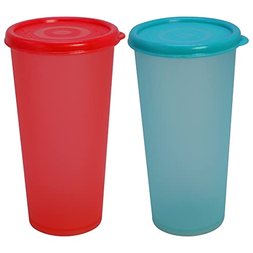 WONDER Plastic Every Day Big Glass Set, 2 pc Glass 600 ml, Green Red Color, Made In India, KBS01117