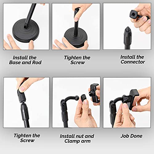 【 MULTI-ANGLE ADJUSTMENT 】: The phone holder has a flexible 15 cm gooseneck arm with a 360-degree swivel ball head that provides a multi-directional viewing angle.