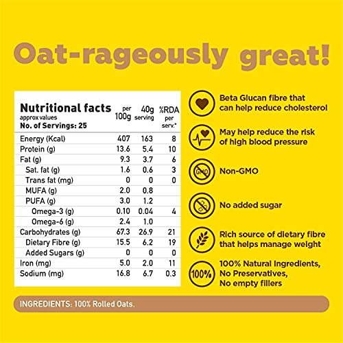 Specification: Yogabar 100% Rolled Oats 1kg (Buy 1 Get 1 FREE) | Premium Golden Rolled Oats, Gluten Free Oats with High Fibre (Rolled…
