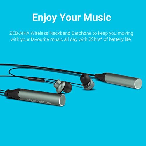 Zeb-Aika Wireless Neckband Earphone with 22 Hours* playback ,Metallic Body ,Braided Neckband ,10mm Audio Driver ,Call/Media Controls ,Voice Assistant and Magnetic Earpieces
