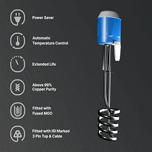 Warm your bath with this easy-to-use immersion water heater rod that ensures powerful water heating. The ZunVolt immersion rod is compact in size, low on cost, saves energy and it is durable as the immersion water heater rod comes with excellent quality anti-corrosive coating. It has an extra strong heating element that helps in heating the water quickly along with automatic temperature control. It is fitted with ISI marked 3 pin top and cable. All of these features come in a single 1.5kW heating rod for enhancing your bathing experience.